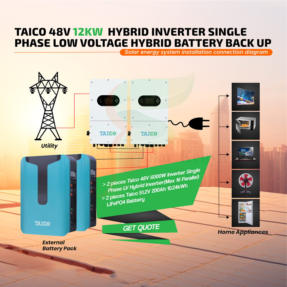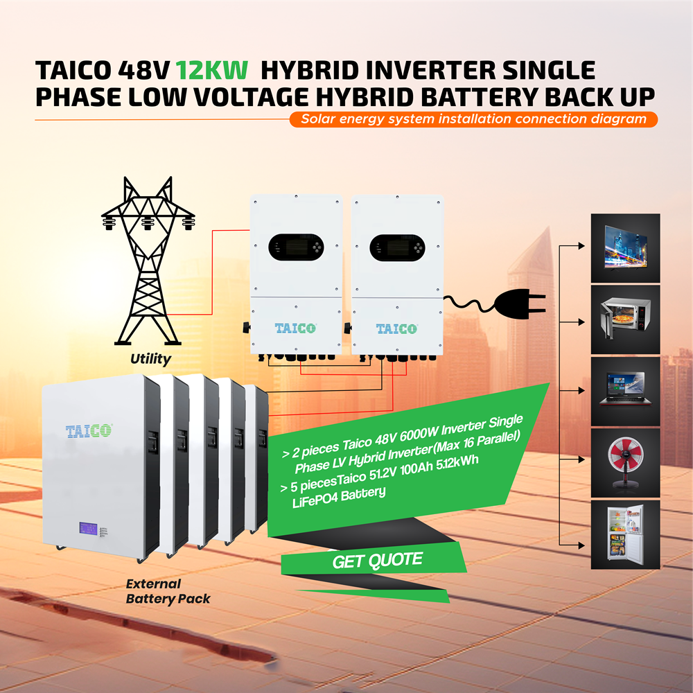 Taico 48V 12KW Hybrid Inverter Single Phase Low Voltage Hybrid Battery Backup