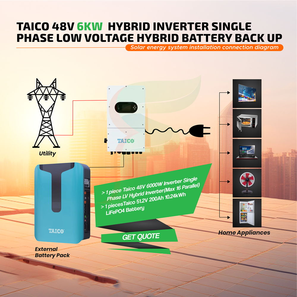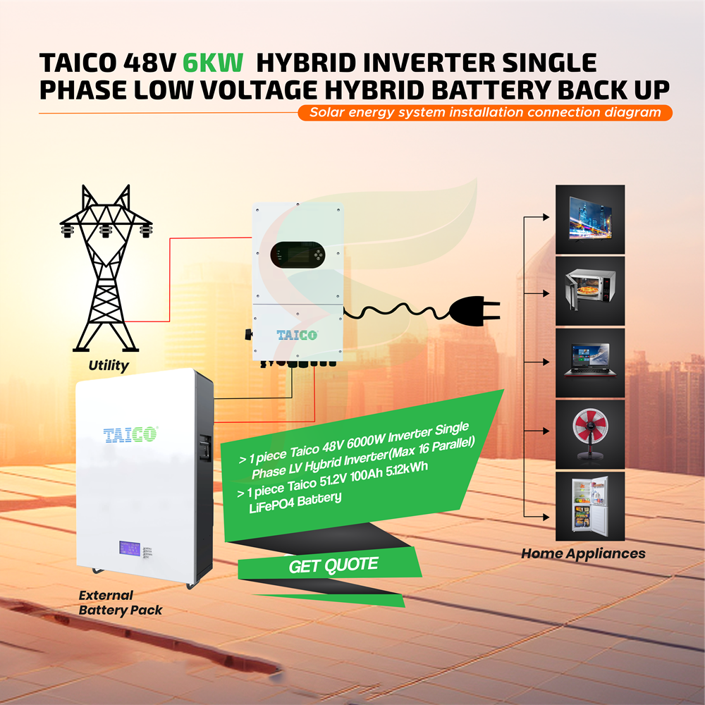 Taico 48V 6KW Hybrid Inverter Single Phase Low Voltage Hybrid Battery Backup