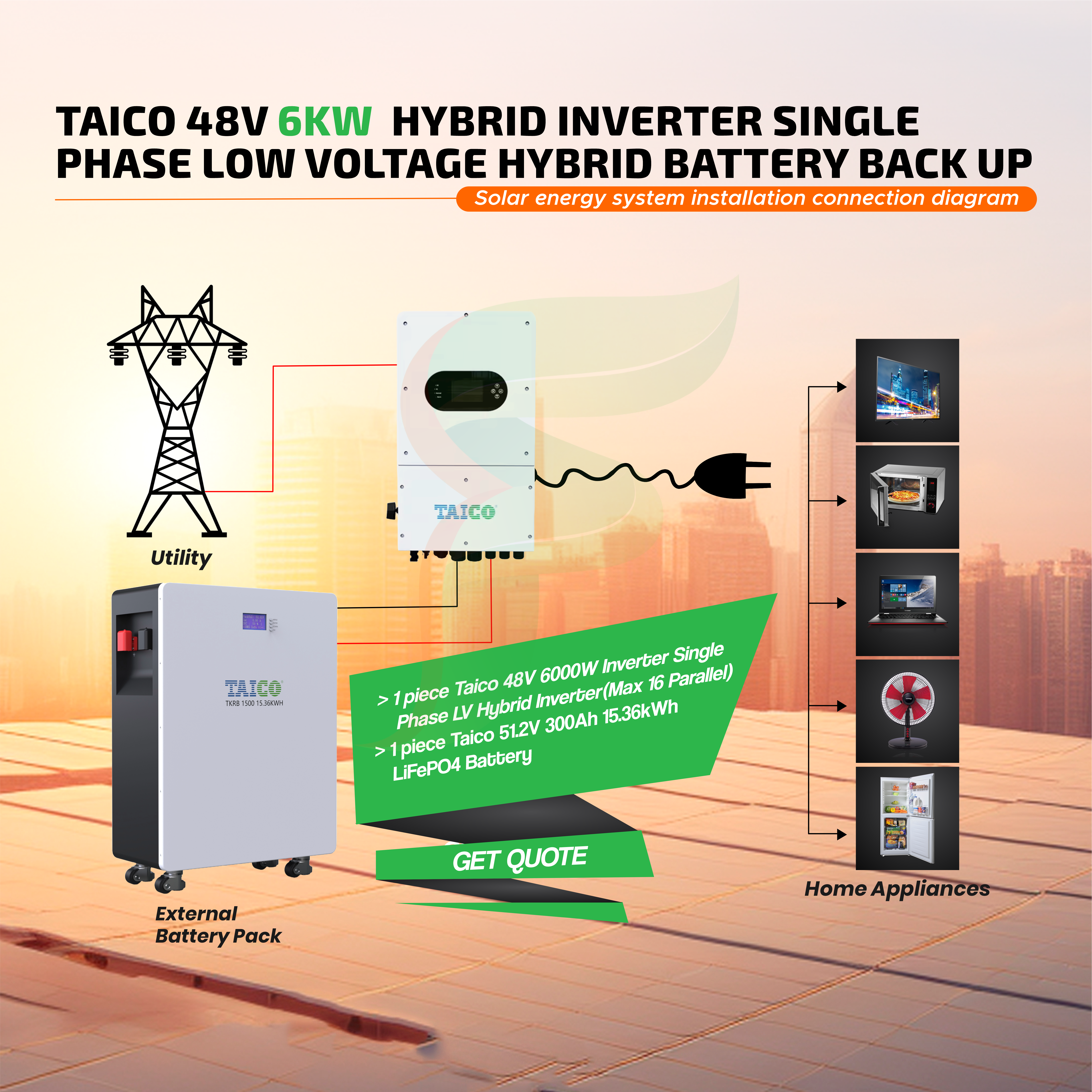 Be the first to review “Taico 48V 6KW Hybrid Inverter Single Phase Low Voltage Hybrid Battery Backup”